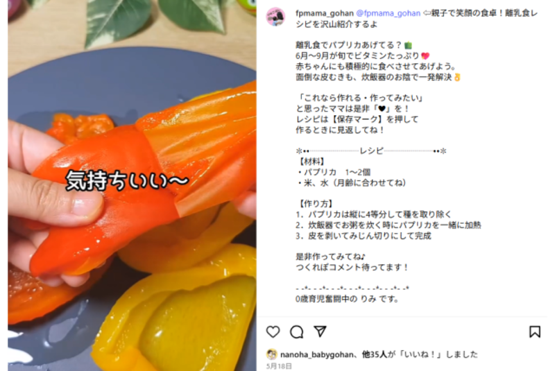 1歳のお子さんを育てるママ。炊飯器フル活用の簡単離乳食レシピのリールがわかりやすく、はじめての人も失敗しないレシピをが人気。