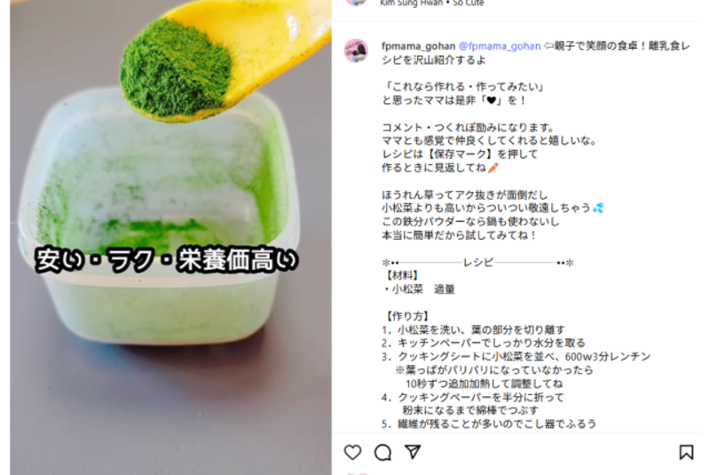 最初は離乳食の本を1冊購入して基礎を学び、その後はインスタグラムで先輩ママのレシピを参考にしながら、自分なりのアレンジを加えていったそうです。