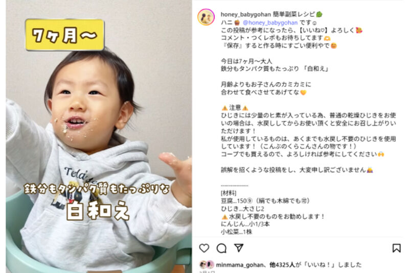 ハニさんは離乳食の詳細な記録はつけていませんでしたが、写真は撮っていました。